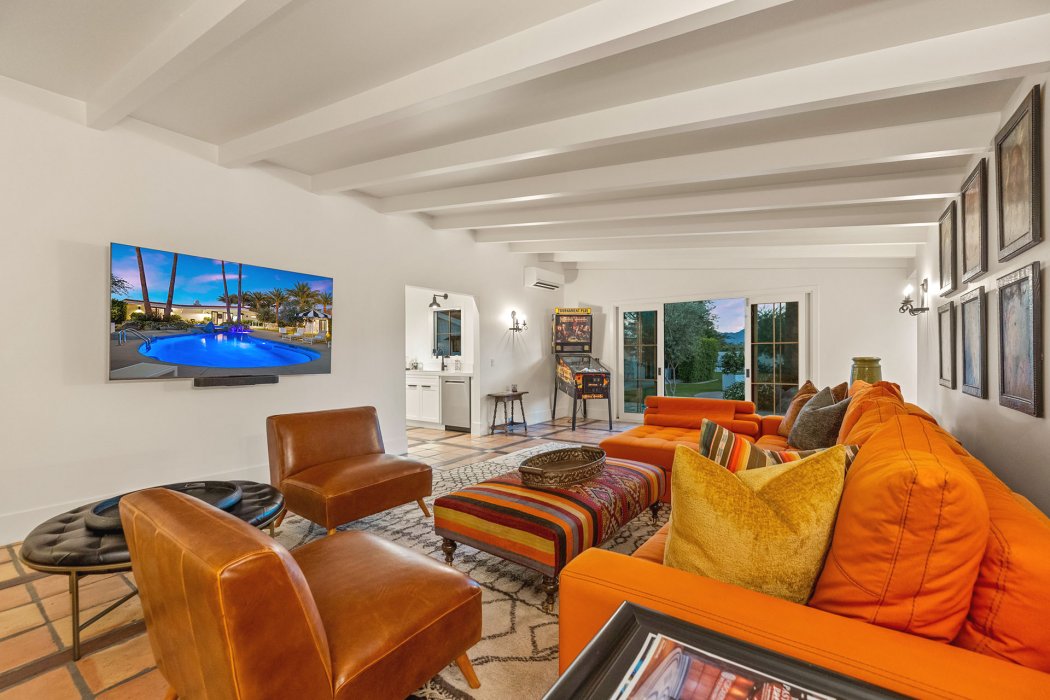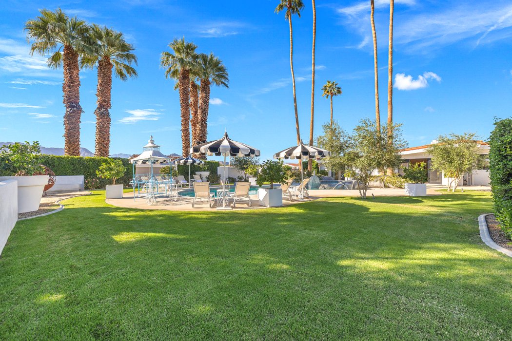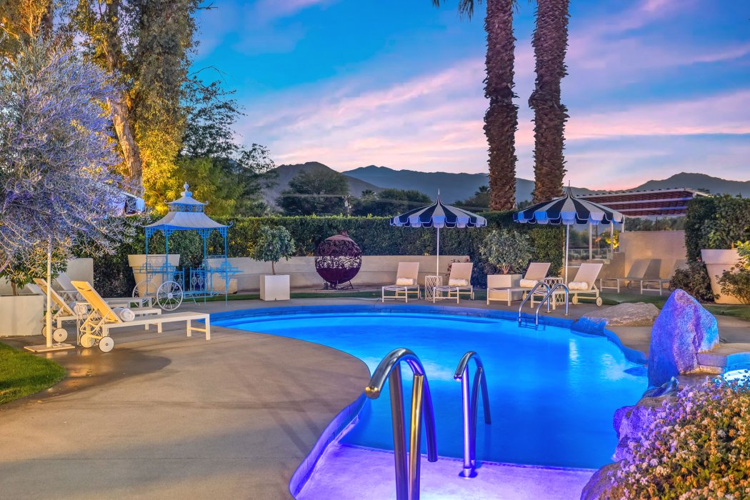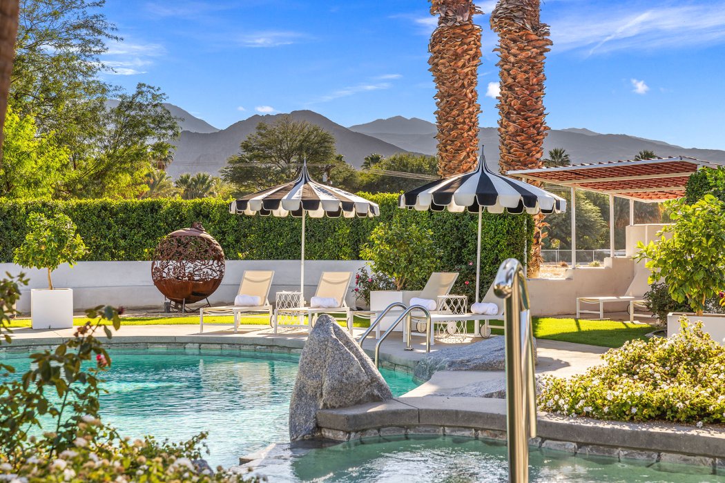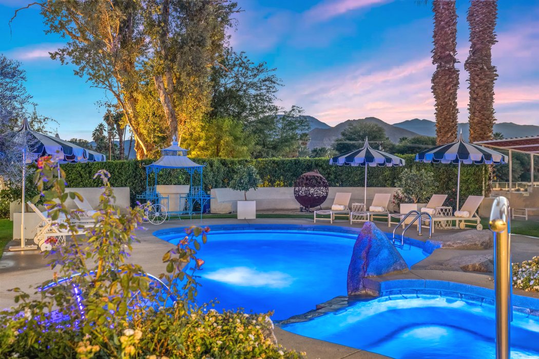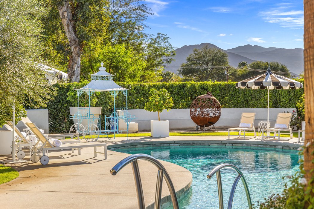 Step outside to discover two acres of beautifully manicured grounds framed by breathtaking mountain views. The estate's private gated entry leads past a charming horse corral and into a resort-style outdoor oasis featuring a sparkling pool and relaxing spa, ample chaise lounges, shaded patio seating, BBQ, and an outdoor dining table for 10. Expansive lawns and multiple gathering areas provide plenty of room for entertaining, sunbathing, or simply taking in the quiet desert scenery. This idyllic property is designed for comfort, privacy, and effortless outdoor living from sunrise to starlit evenings.