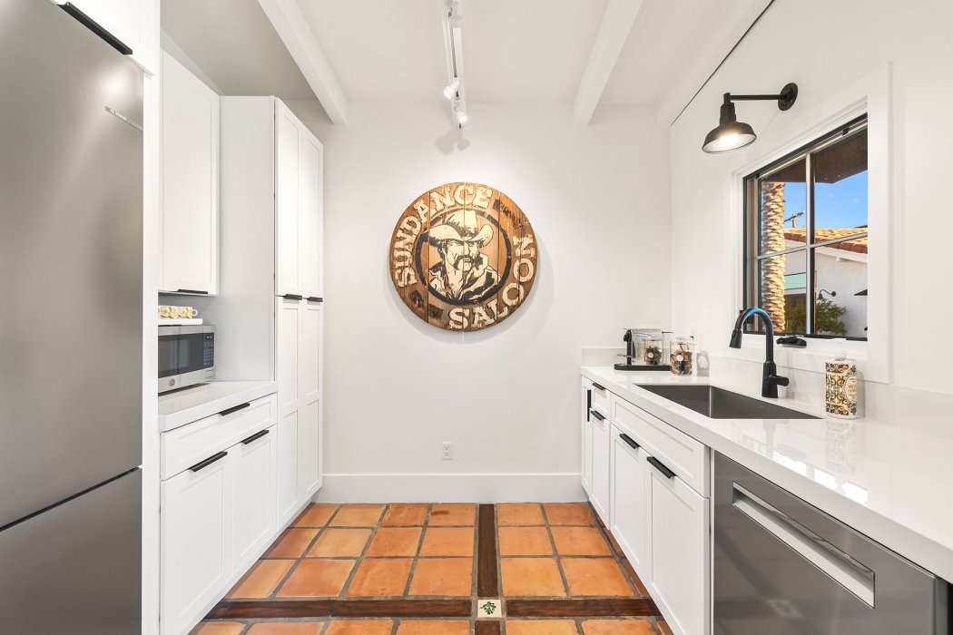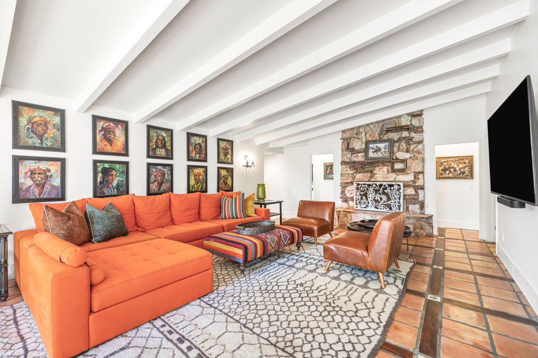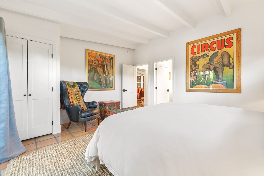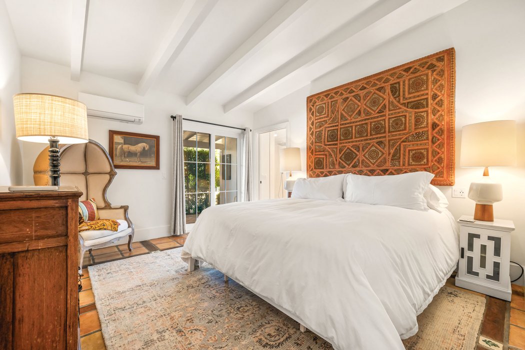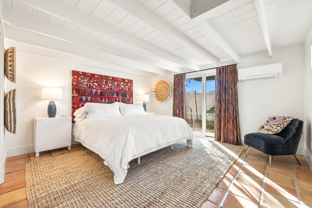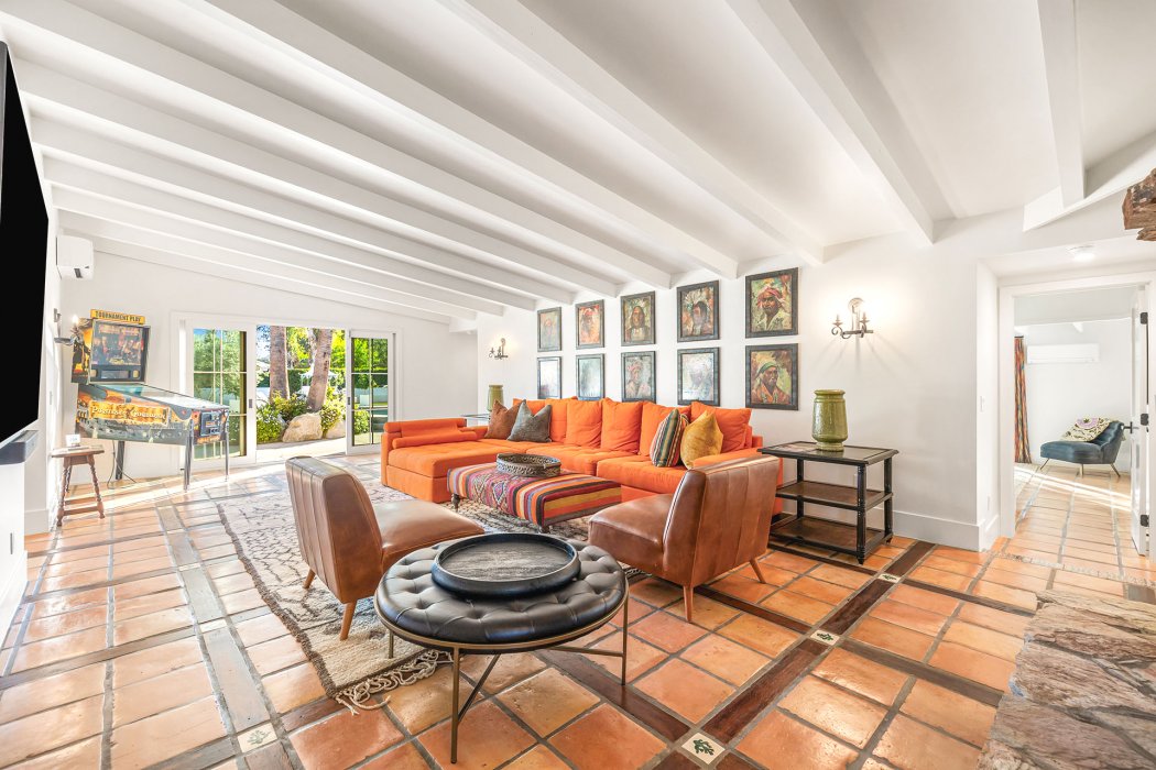 Inside, Desert Dreams Ranch blends classic California ranch style with modern luxury. The elegant 2,500 sq ft main house offers airy, open living spaces filled with natural light, while the adjacent five-bedroom guest house includes its own central living room and kitchenette - perfect for large groups desiring both connection and privacy. The main house has a fully equipped gourmet kitchen, spacious living room with fireplace, wet bar, and dining table seats for 12, with an additional 4 seats at the kitchen bar. Designer finishes, high-end furnishings, and thoughtful details throughout the home create an inviting, resort-like atmosphere.
