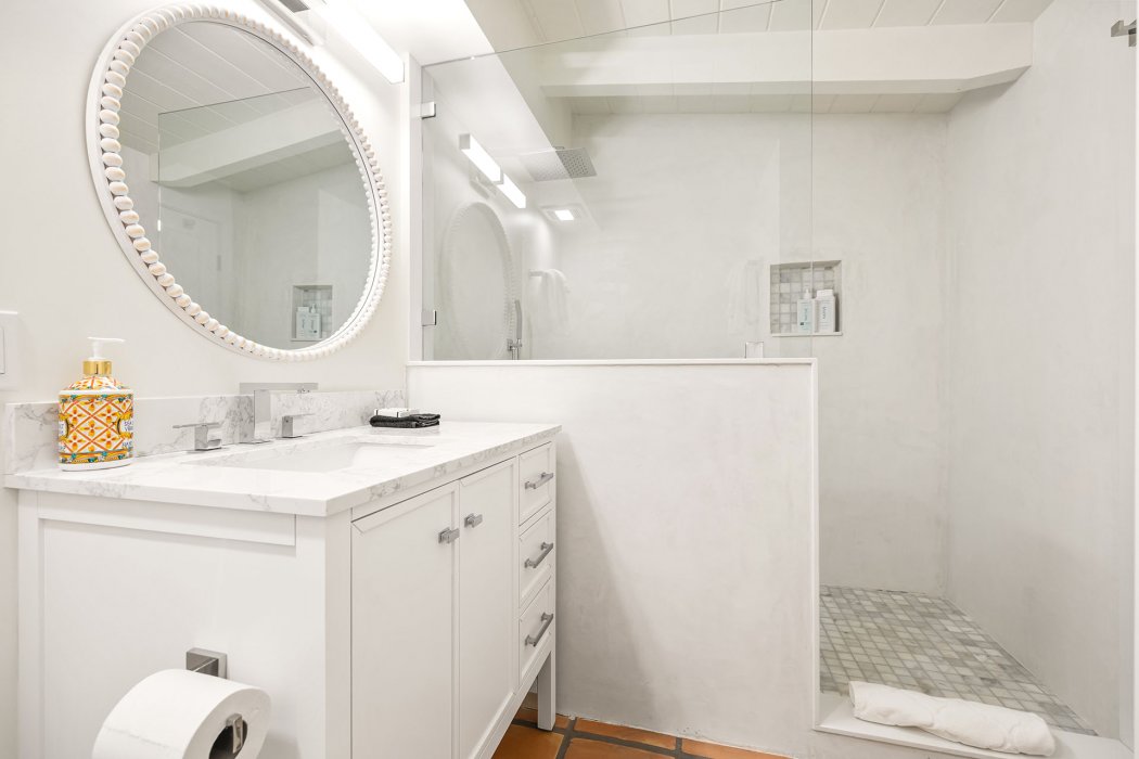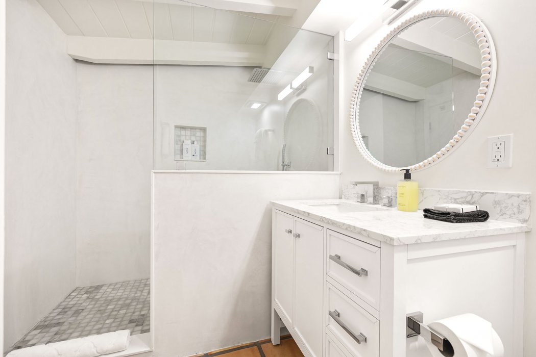 Suites 2-6 are in the Guest House and each offer a King bed, TV, and en suite bathroom with shower. Each suite is thoughtfully designed for comfort and privacy, making every room feel like its own luxury retreat.