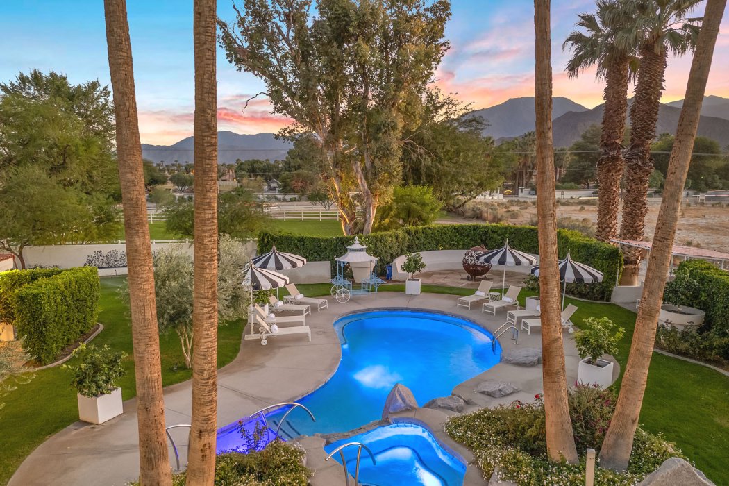Welcome to Desert Dreams Ranch, a historic, designer-renovated California estate where luxury meets wide-open desert beauty. This extraordinary retreat features 6 bedrooms and 6.5 bathrooms, expansive open-concept living spaces, a grand main house plus a 5 suite guest casita. Outdoors, you'll enjoy panoramic mountain views, multiple lounging and dining areas, a sparkling pool and spa, and sprawling landscaped grounds perfect for gathering. Located just steps from the Empire Polo Grounds, this private gated ranch offers resort-style living in an unbeatable Coachella Valley setting.