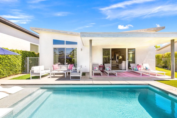 Framed by the dramatic Santa Rosa Mountains, Harlow House is a mid-century inspired retreat tucked within a private enclave of just 18 homes - walking distance to the Indian Wells Tennis Garden. It features a bright, open concept floorplan with a beautiful kitchen, comfortable great room and four stylish bedrooms. The backyard boasts a sparkling pool and spa, outdoor living room and shower, alfresco dining and BBQ, and panoramic mountain views. Guests also enjoy access to the community's central grounds - complete with a large pool, citrus orchard, and pet-friendly lawns.