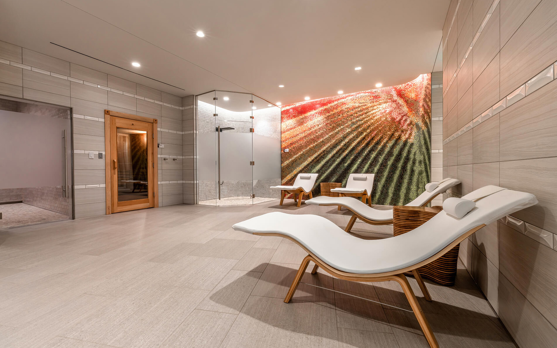 - Amenities 22 private mineral baths, 15 treatment rooms, cryotherapy chamber, two float pod suites, halotherapy salt caves, eucalyptus steam room, menthol dry sauna, and a resort-style mineral pool with four jacuzzis.